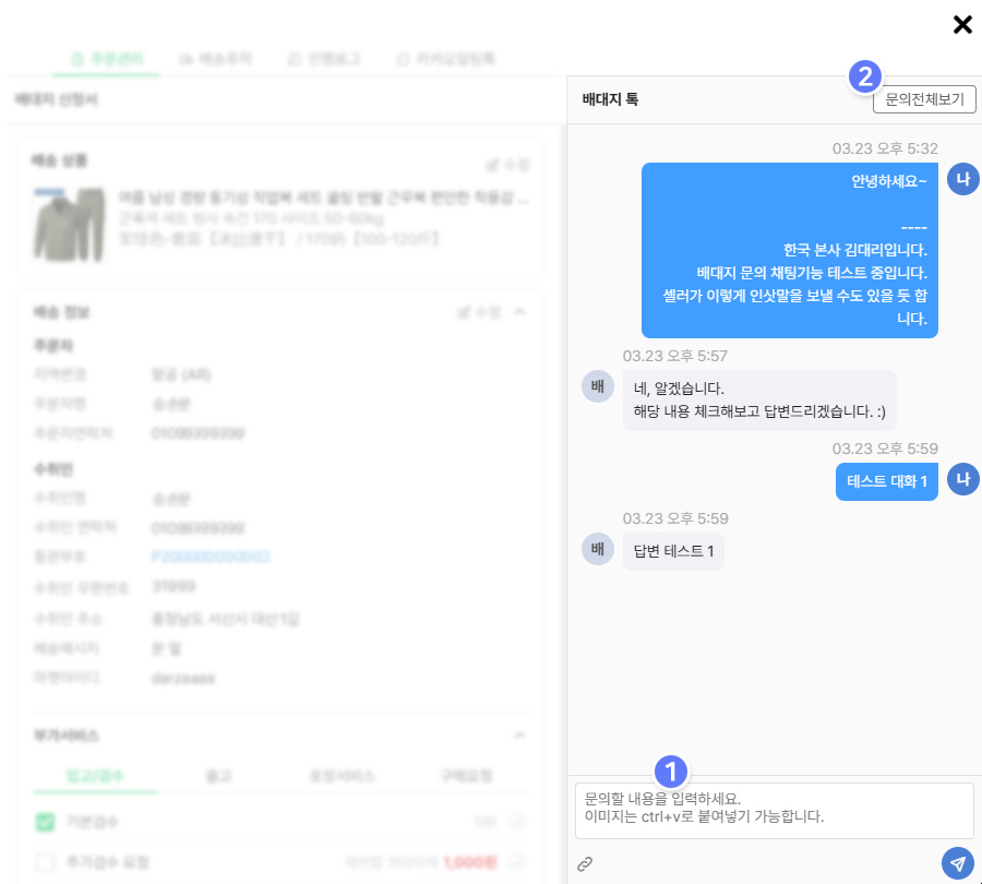 해당 주문서에 대한 배대지 문의를 하실 수 있습니다.